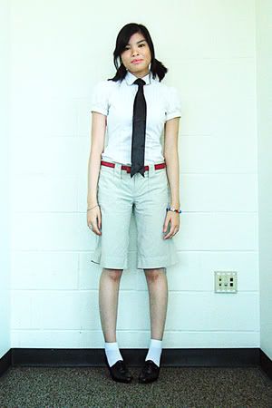 Charlotte Russe shirt, Merona scarf worn as a tie, Bayo shorts, Payless oxfords